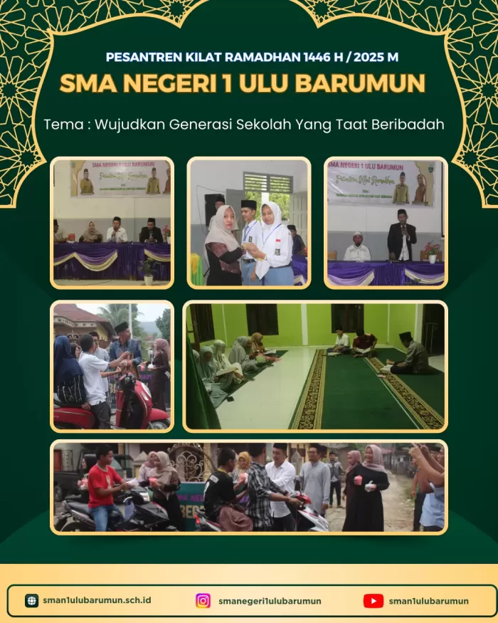 SMA Negeri 1 Ulu Barumun, Mengadakan Pesantren Kilat Ramadhan Tahun 1446 H / 2025 M kegiatan Pesantren Kilat Ramadhan ini diselenggarakan dalam waktu singkat selama 3 (tiga) hari mulai dari tanggal 19 s.d 21 Maret 2025 kegiatan ini diikuti oleh siswa dan siswi SMA N 1 Ulu Barumun. Pesantren Kilat Ramadhan ini dibuka langsung oleh Kepala Cabang Dinas Pendidikan Wilayah XII Provinsi Sumatera Utara Bapak Marwan Fauzi, S.Sos juga hadir Komite dan tenaga pendidik SMA Negeri 1 Ulu Barumun.